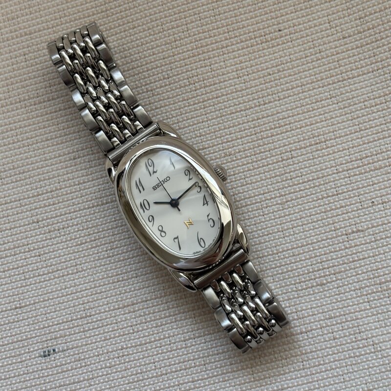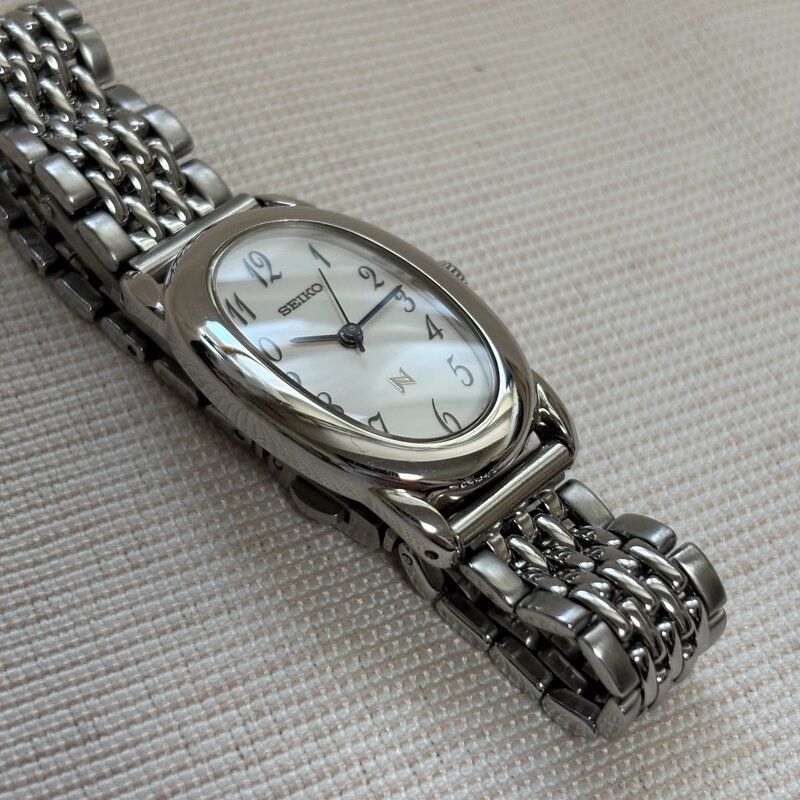 電池交換済 良品 SEIKO セイコー ノイエ 1F21-5B70 オーバル レディースクオーツ 腕時計 ステンレス ブレス IW509AT02SKN//