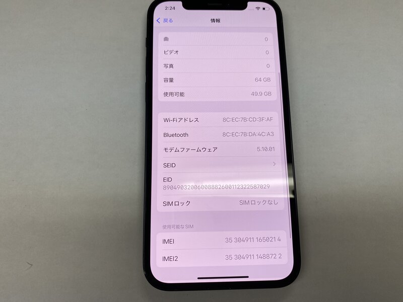 アクティベーションロック・・・OFF 充電端子不可(ワイヤレス充電可)・アウトカメラ不可