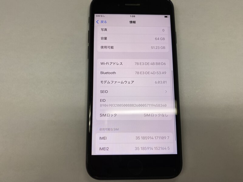 EI947 SIMフリー iPhoneSE 第2世代 ブラック 64GB