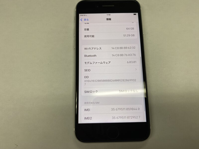 EI948 SIMフリー iPhoneSE 第2世代 ホワイト 64GB