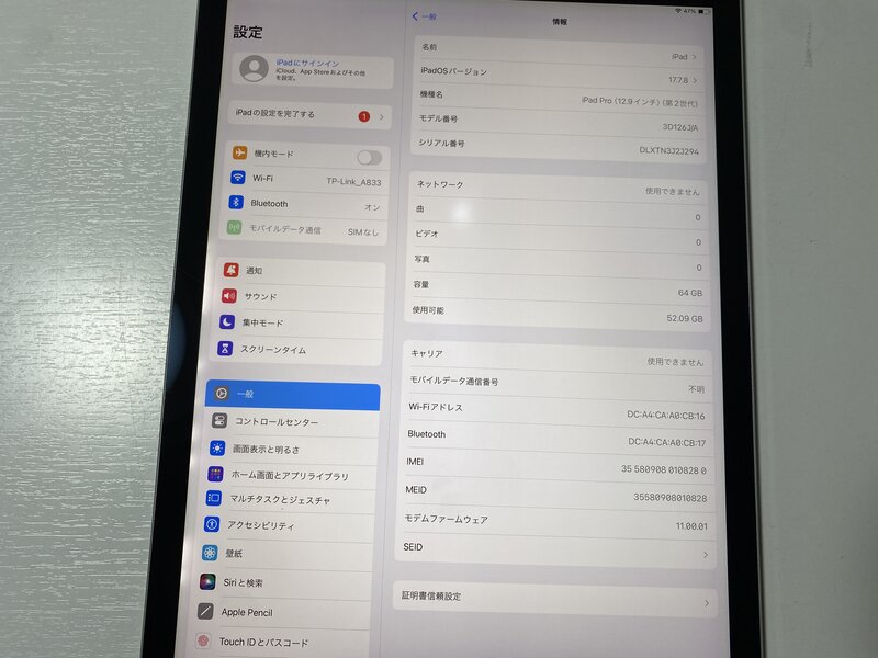 バッテリーに関しましては消耗品のため新品同様の性能を発揮しない場合がございます。予めご了承ください。
