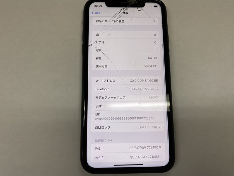 アクティベーションロック・・・OFF 画面割れ・インカメラ曇り