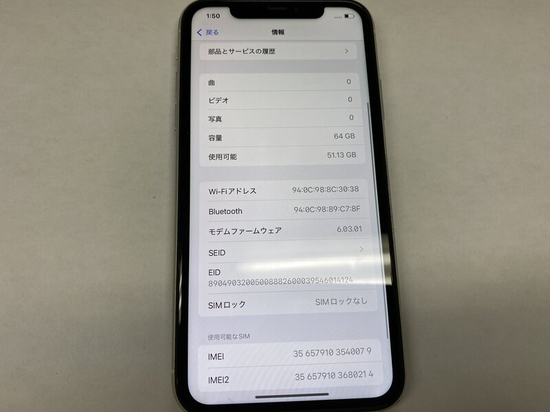 EJ347 SIMフリー iPhone11 ホワイト 64GB