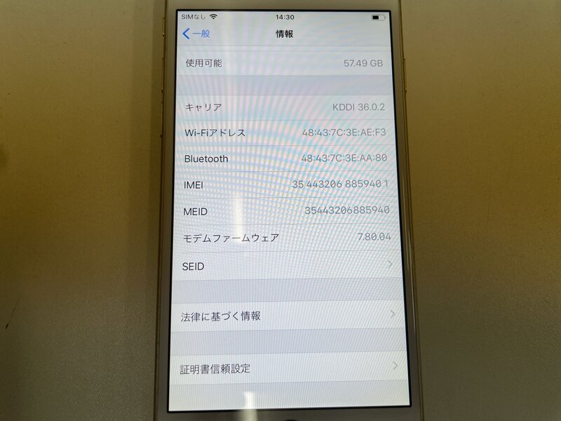 MG654 au iPhone6 64GB ゴールド 判定〇