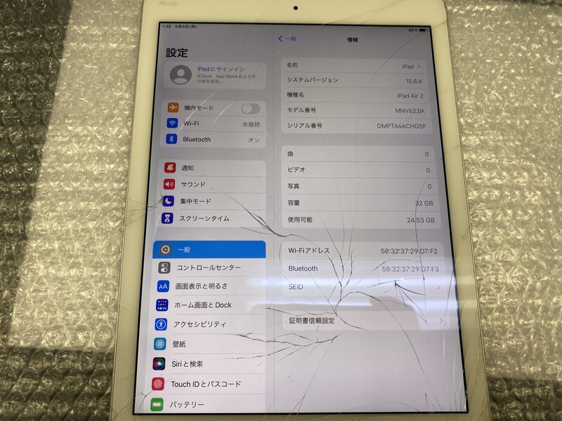 アクティベーションロック・・・OFF 画面割れ