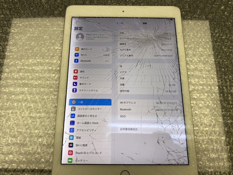 アクティベーションロック・・・OFF 画面割れ・インカメラ曇り・液晶ムラ・光漏れ
