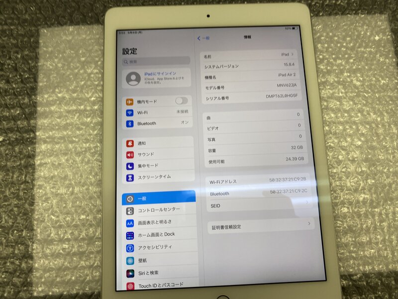 EJ507 iPad Air 第2世代 Wi-Fiモデル A1566 シルバー 32GB