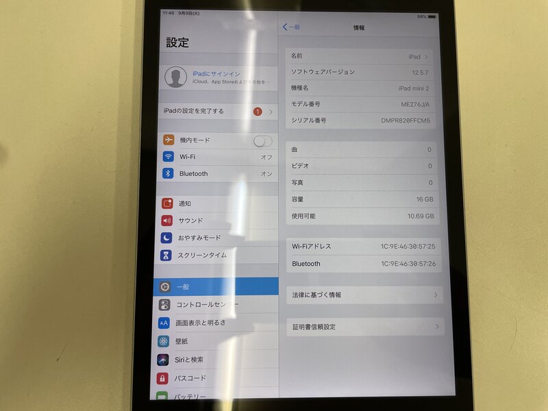 MG694 iPad mini2 Wi-Fiモデル A1489 16GB スペースグレイ