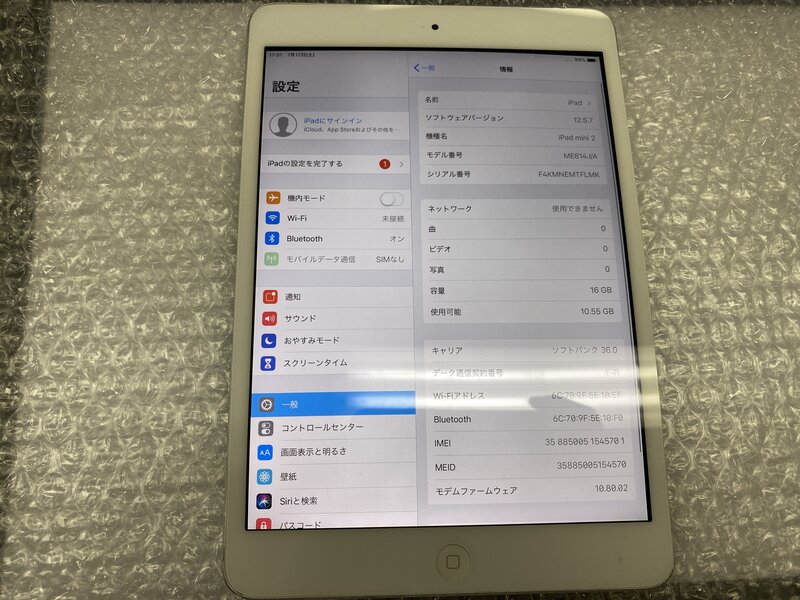 アクティベーションロック・・・OFF 画面浮き・バッテリー膨張・バッテリー劣化(バッテリー最大容量:22%)