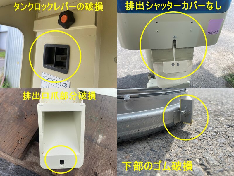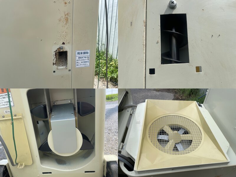 「くず米排出口のプラスチックの爪2か所が破損しております(テープ等で固定する必要がございます)」