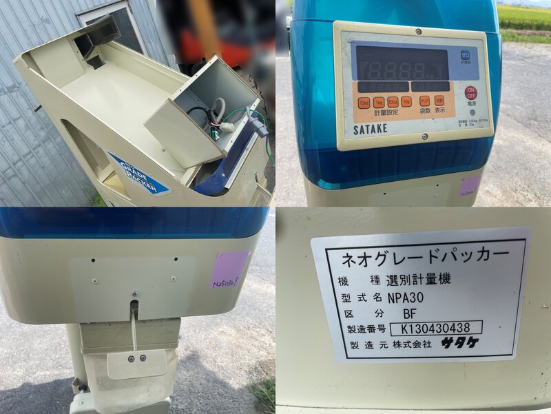 【美品】自動選別計量機 サタケ グレードパッカー NPA30 自動 計量機 計量器 選別計量機 通電確認OK 中古 滋賀県