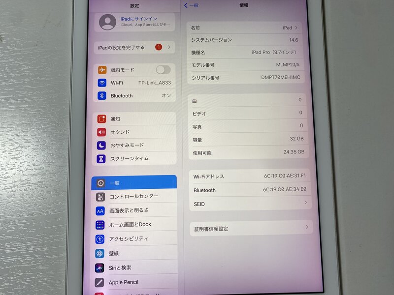 IV233 iPad Pro(9.7) 32GB Wi-Fi シルバー