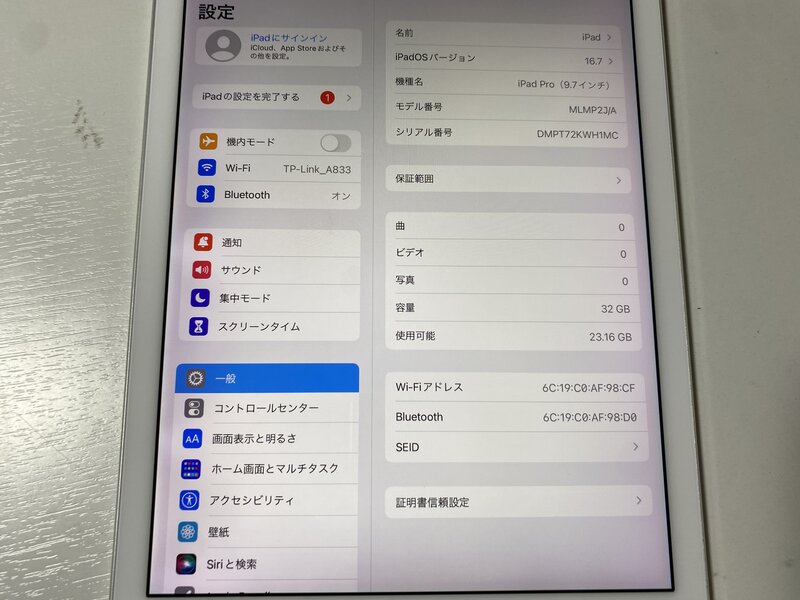 IV248 iPad Pro(9.7) 32GB Wi-Fi シルバー