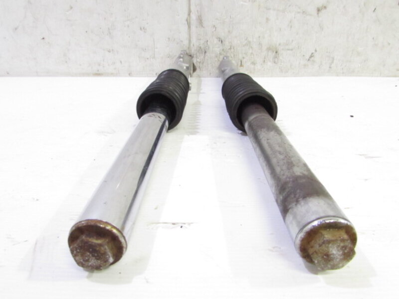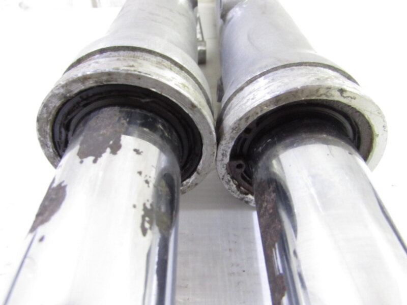 【足回り】 ☆フロントフォーク・・・目視で曲がりもなく、外観特に気になるような破損は御座いません!取り外し前に数回ボトムをさせてみましたところOIL滲みが見られました! 蛇腹ブーツに破れが御座います! ☆スイングアーム・・・目視にて曲がりもなく、外観特に気になるような破損は御座いません! ☆リアサスペンション・・・目視で曲がりも無く、外観特に気になるような破損は御座いません! ☆ホイール・・・前後共に目視で曲がりもなく、スムーズに回転しておりました!