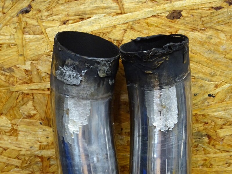 【250916】ホーネット250(MC31-1001)◆ 社外エキゾーストパイプ エキパイ マフラー 2本/左右出し SP忠男?? 凹み/カット加工有