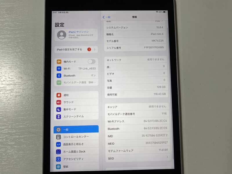 バッテリーに関しましては消耗品のため新品同様の性能を発揮しない場合がございます。予めご了承ください。