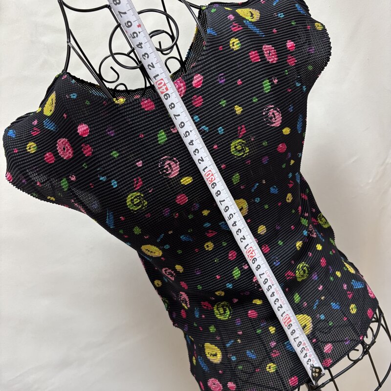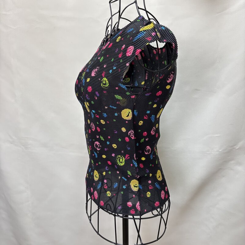 1円~ 美品 イッセイ ミヤケ ISSEY MIYAKE me プリーツ MI21FK437 フレンチスリーブ ブラック マルチカラー IW509CF_PLTS09NSLDTSMLT//