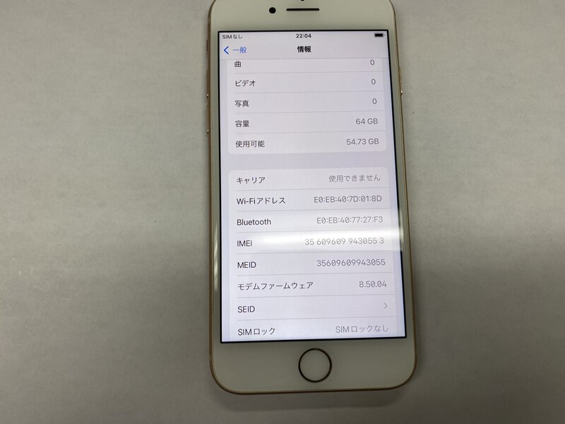 EK318 SIMフリー iPhone8 ゴールド 64GB