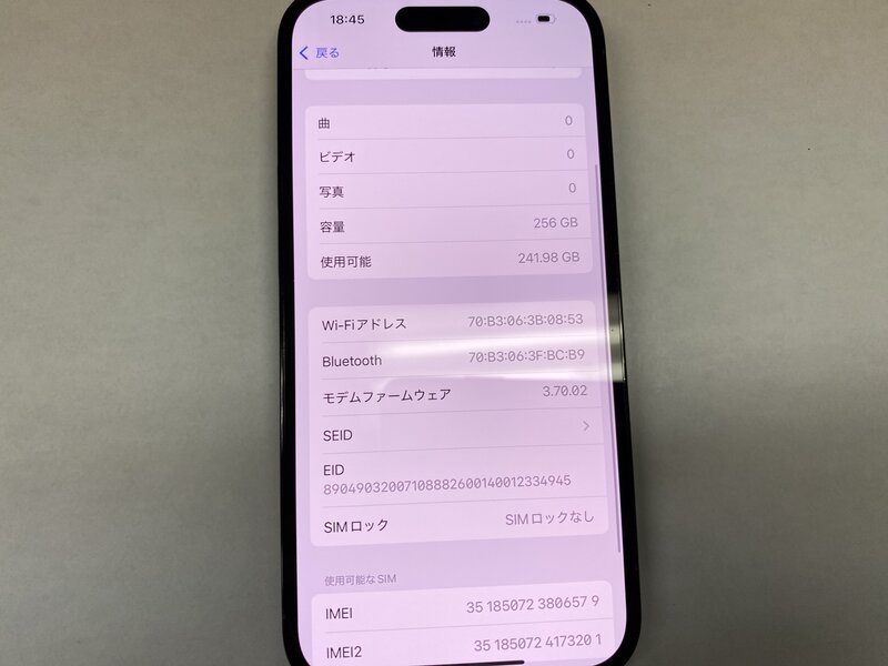 EK451 SIMフリー iPhone14Pro スペースブラック 256GB