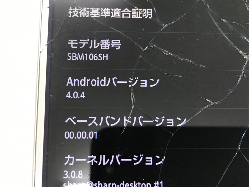 画面割れ、充電口カバーなし