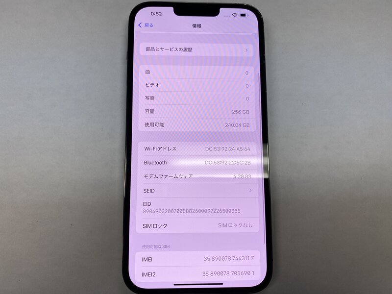 アクティベーションロック・・・OFF カメラ警告・アウトカメラレンズ割れ・アウトカメラ不良(0.5倍レンズ切り替え不可)