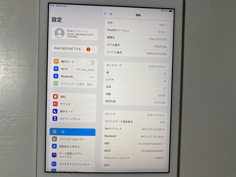 アクティベーションロックOFF 本体湾曲