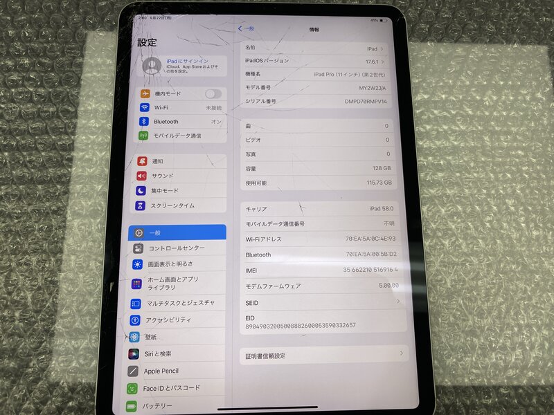 アクティベーションロック・・・OFF 画面割れ