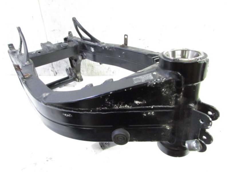 【足回り】 ☆フロントフォーク・・・PAIOLI製!! イニシャルアジャスター付きの倒立フォークになります! 目視で曲がりもなく、外観特に気になるような破損は御座いません!取り外し前に数回ボトムをさせてみましたが特に気になるようなOIL滲みは見られませんでした! ダストブーツにひび割れが出てきております! 一部ボトムケースに腐食が御座います! ☆スイングアーム・・・目視にて曲がりもなく、外観特に気になるような破損は御座いません!シャフトなどのSETとなります!Rタイヤフェンダーを固定する箇所が一ヵ所折れております! ☆リアサスペンション・・・PAIOLI製!! アジャスター付きリアサスペンションになります! 目視で曲がりも無く、外観特に気になるような破損は御座いません! アジャスタープラダイアルにひび割れが御座います! ☆ホイール・・・マルケジーニ製(マグネシウム??)のホイールになります! 前後共に目視で曲がりもなく、スムーズに回転しておりました! 一部腐食、塗装剥げが御座います! エアバルブ破損しておりますので交換してご使用ください! 【その他】