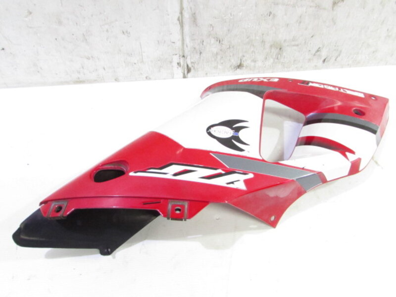 【外装】 ☆タンク・・・特に気になるような破損はなく、タンク内見える範囲に特に気になるような錆は見られません!色褪せが御座います! ☆スクリーン・・・ゼログラビティ製のスモークスクリーンになります! 特に気になるような破損は御座いません!比較的状態の良い商品となります! ☆アッパーカウル・・・特に気になるような破損は御座いません! 内側に一部小欠け、色褪せが御座います! ☆アッパーサイドカウル・・・左右共に特に気になるような破損は御座いません! 色褪せが御座います! 一部軽い傷が御座います! ☆アンダーカウル・・・特に大きな破損は御座いません! 一部傷や欠け、塗装剥げが御座います! ☆Fフェンダー・・・特に気になるような破損は御座いません!色褪せが御座います! カーボン調となっております! ☆サイドカバー・・・左右共に特に気になるような破損は御座いません! ☆テールカウル・・・特に気になるような破損は御座いません!色褪せが御座います! ☆Fシート・・・レザーの硬化や色褪せ、破れが御座います! 補修ベースにご活用ください! ☆Rシート・・・特に目立った破損は御座いません! 一部小破れ箇所が御座います!