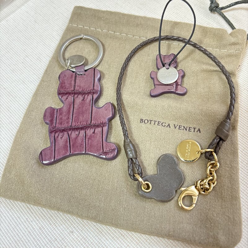 極上 美品 BOTTEGA VENETA ボッテガ キーリング ストラップ イントレチャート バタフライ&ベア 蝶と熊 小物 3個セット IW509DA01BTTG//