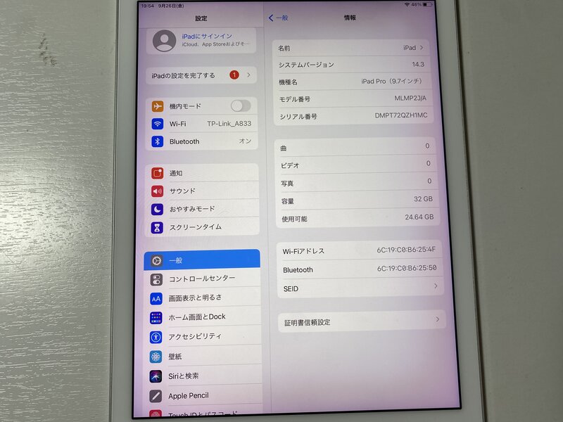 IV956 iPad Pro(9.7) 32GB Wi-Fi シルバー
