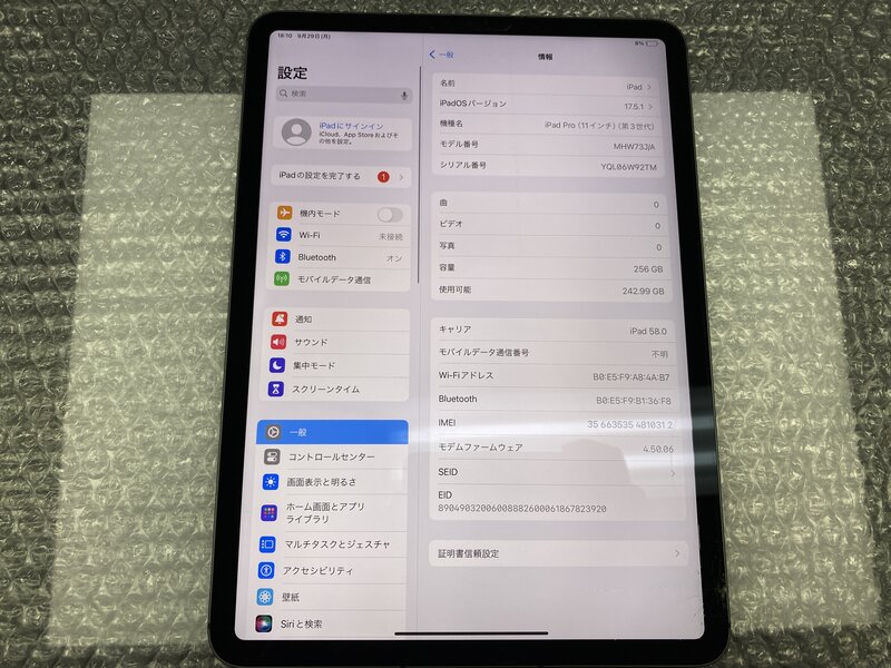 アクティベーションロック・・・OFF 画面割れ