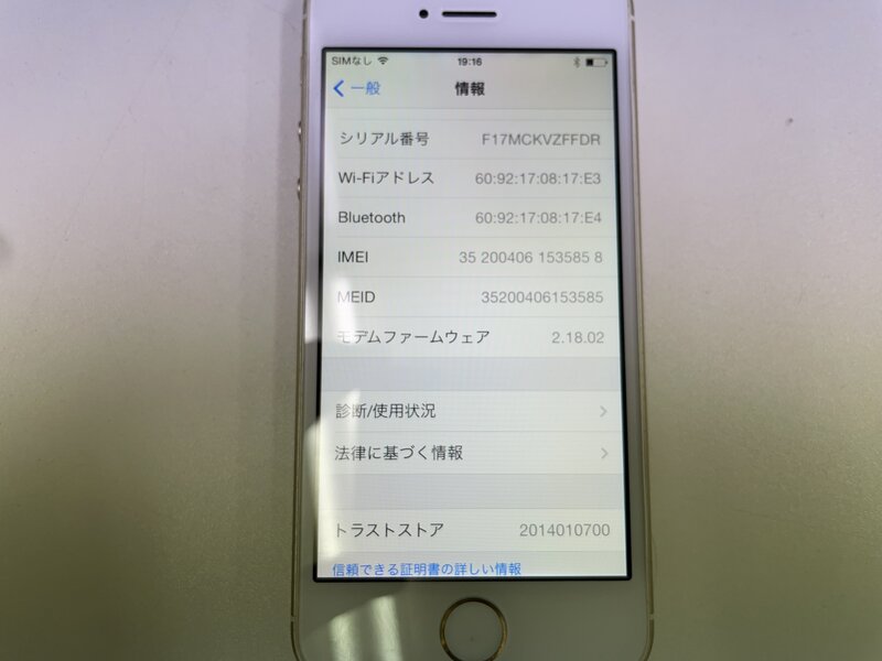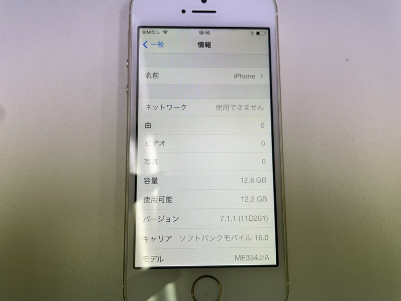 MH034 softbank iPhone5s 16GB ゴールド 判定〇
