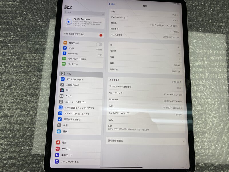 アクティベーションロック・・・OFF 画面割れ・アウトカメラガラス割れ・本体歪み・輝点・電源陥没(使用可)