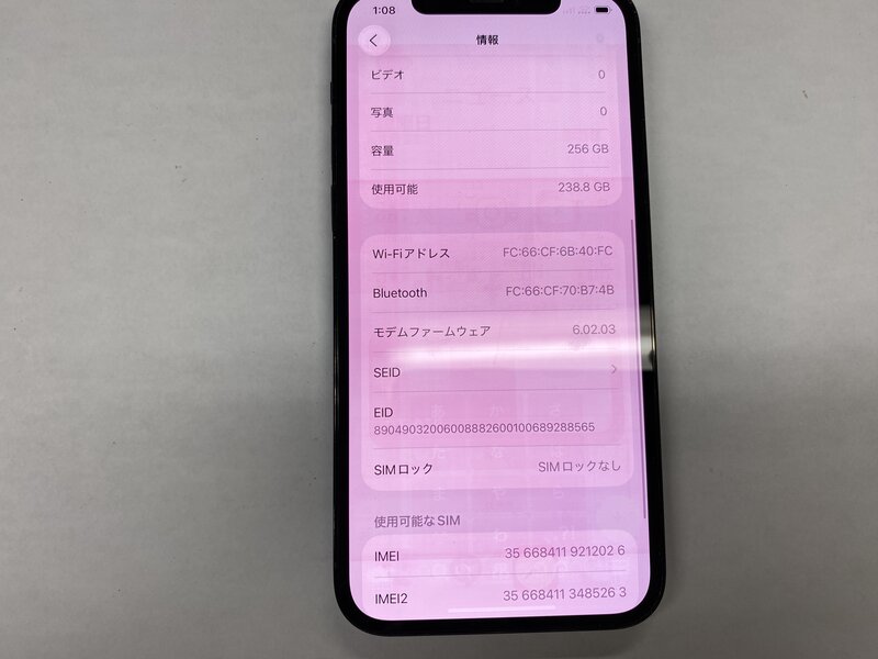 アクティベーションロック・・・OFF 液晶焼付き・アウトカメラレンズ割れ・アウトカメラ起動時異音