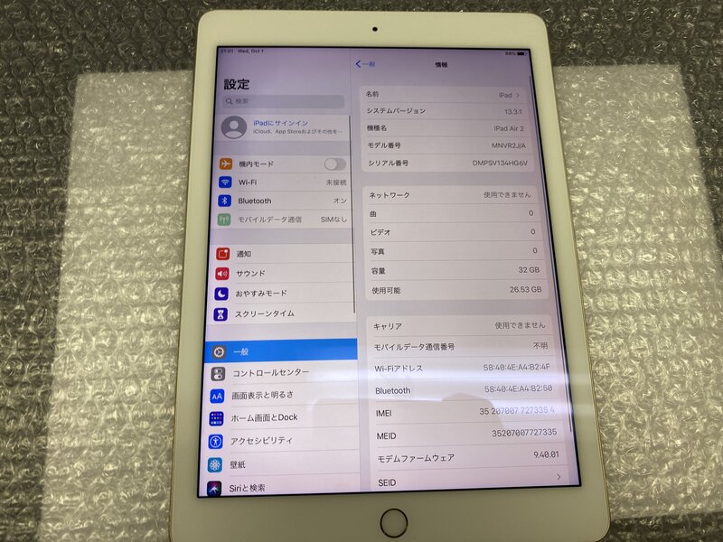 アクティベーションロック・・・OFF 画面浮き・バッテリー膨張・液晶赤み