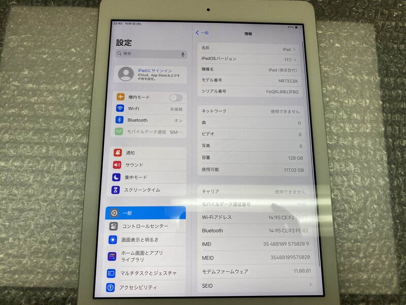 アクティベーションロック・・・OFF 画面割れ