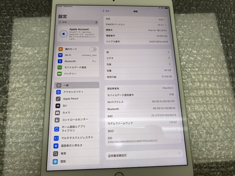 アクティベーションロック・・・OFF バッテリー劣化・光漏れ