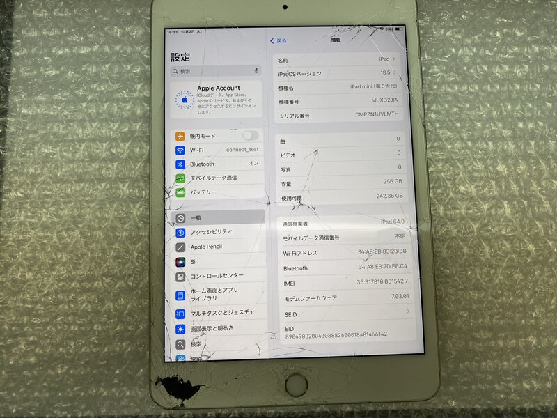 アクティベーションロック・・・OFF 画面割れ