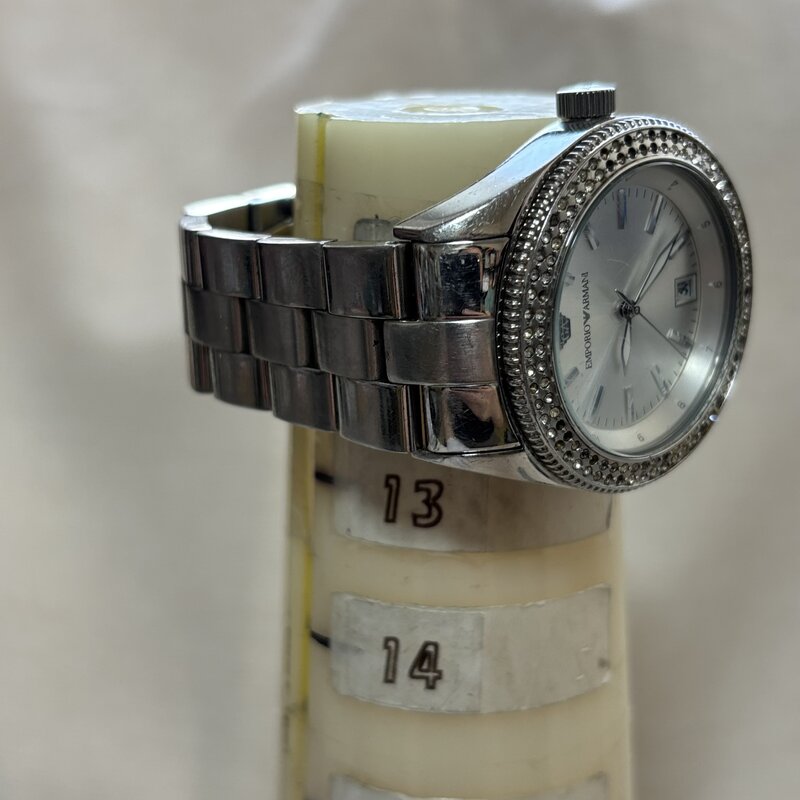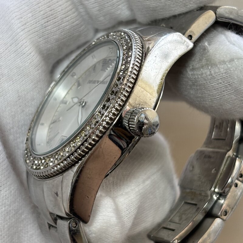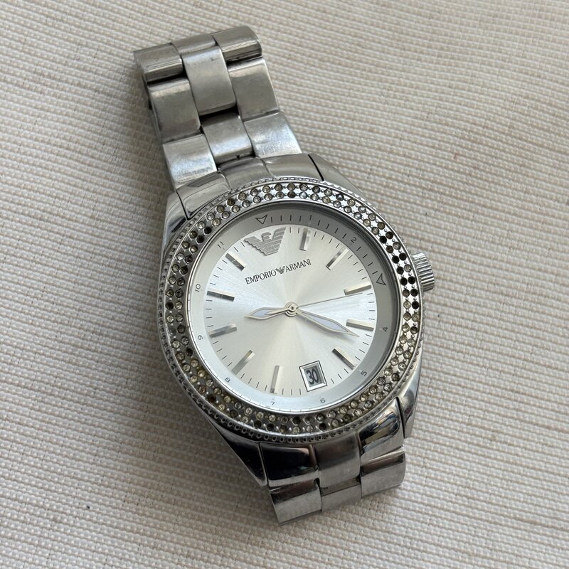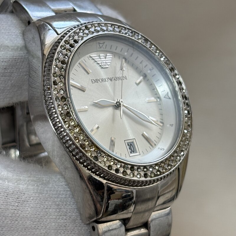 1円~ 稼働 エンポリオアルマーニ AR-5781 デイト ラウンド メンズクオーツ 腕時計 ラインストーン IW510CT28ARM//