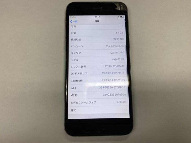 アクティベーションロック・・・OFF 画面割れ・画面浮き・インカメラ不可・TouchID不可