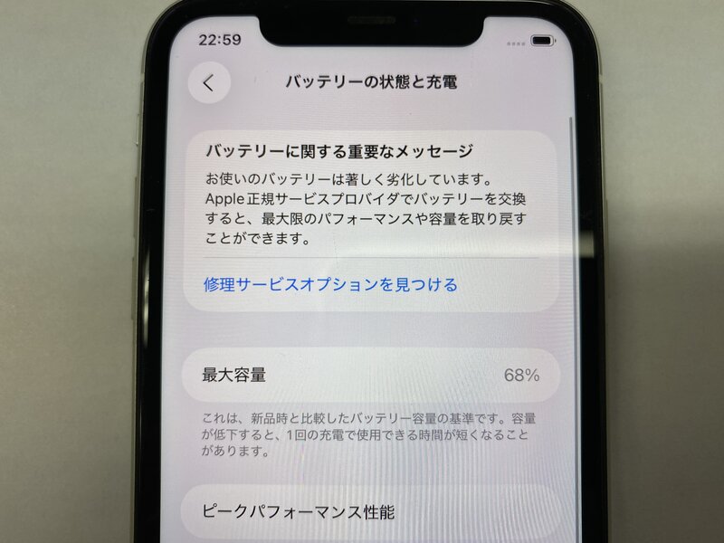 バッテリーに関しましては消耗品のため新品同様の性能を発揮しない場合がございます。予めご了承ください。