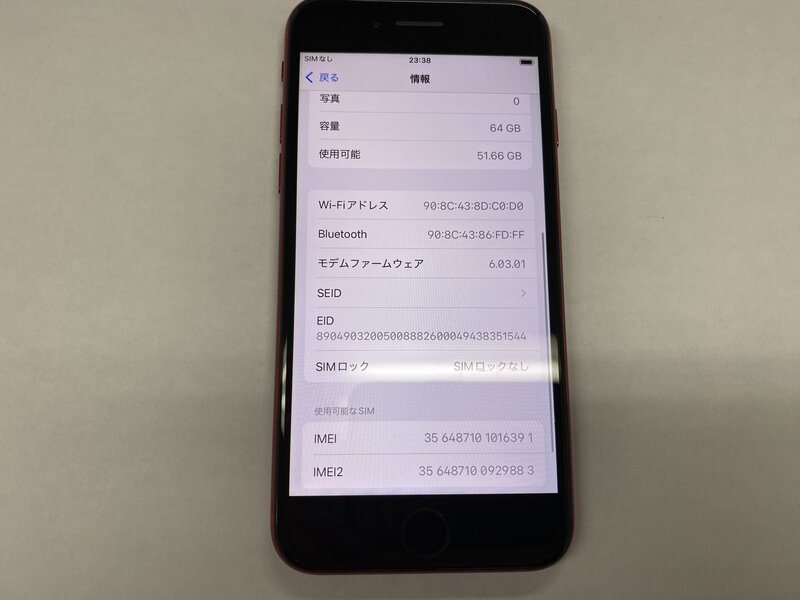 EN318 SIMフリー iPhoneSE 第2世代 レッド 64GB