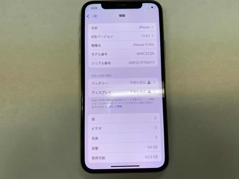 アクティベーションロック・・・OFF ディスプレイ警告・バッテリー交換品