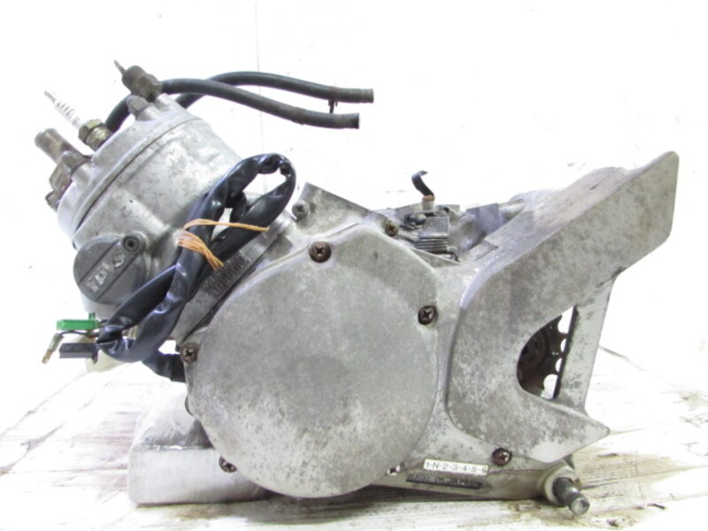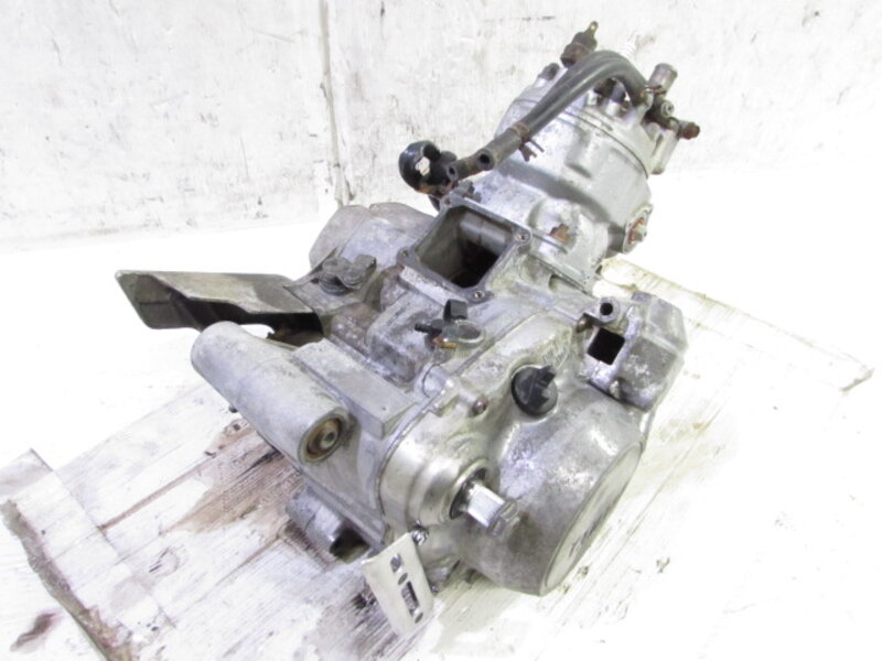 【エンジン】 ☆大人気!! 今では大変希少となっております低走行実働エンジンとなります! ☆メーター読みで走行距離はまだ11912kmと低走行エンジンのようで、エンジン圧縮もシッカリとあり、まだまだ元気バリバリな実働エンジンになります! ☆動作確認の為に敷地内を試乗致しましたが、問題なく変速でき特に気になるような異音等は御座いませんでした! ☆外観に関しまして特に気になるような破損は御座いません! ☆始動が微妙でアイドリング、吹け上りにももたつきが御座いました! こちらの車両より取り外ししたキャブレターは取り外し後に当社にて分解洗浄させて頂いておりますが、ご使用前の際メンテナンスやOHをお勧めいたします! ☆商品写真撮影時にピストンを覗いてみましたが異音も感じなかったよう特に気になるような傷などは見られませんでした! ☆オイルポンプやインマニ/リードバルブ/プーリーなど一部取り外しして別で出品させて頂いております! ☆始動確認済で圧縮もシッカリとある今では希少なこちらの低走行実動エンジンを、是非この機会に如何でしょうか!