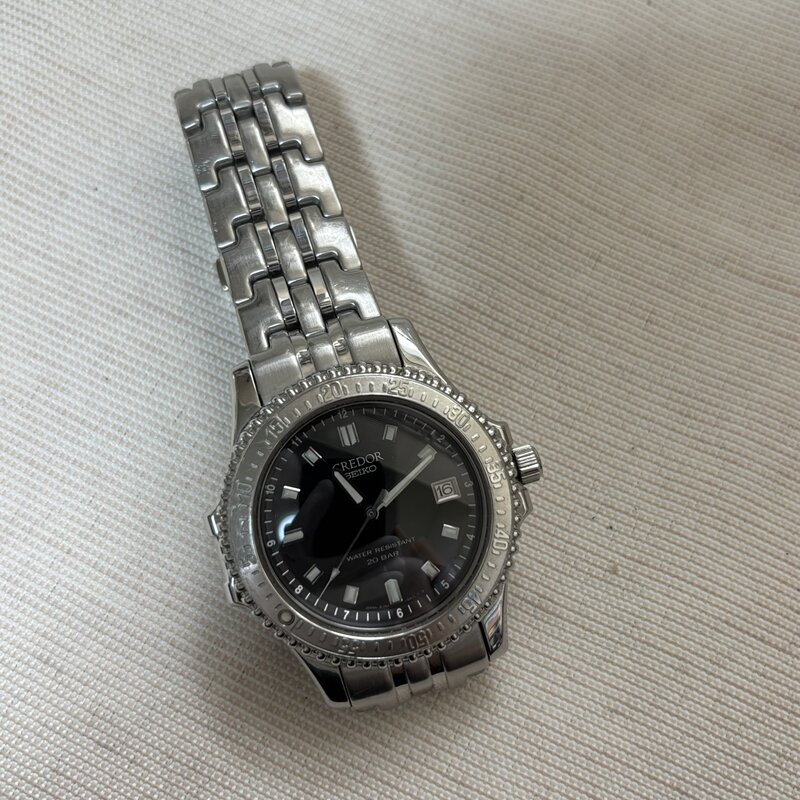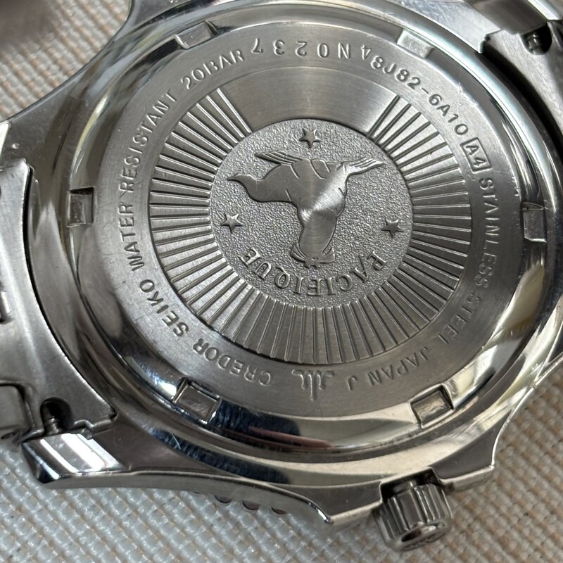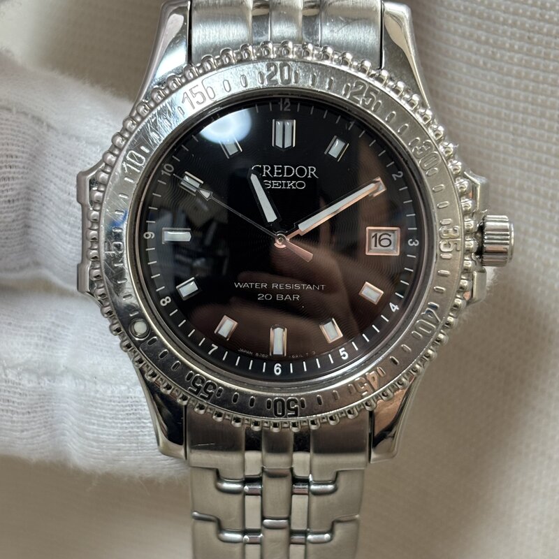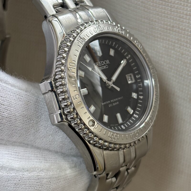電池交済 上位 SEIKO CREDOR セイコークレドール 防水 パシフィーク 回転ベゼル メンズクオーツ腕時計 8J82-6A10 黒文字盤 IW511AT20SKCRD