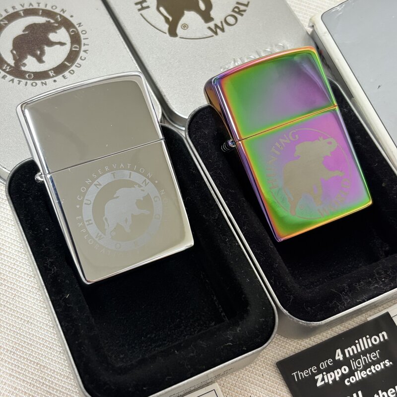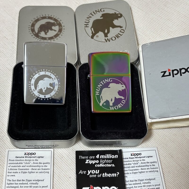 1円~ 未使用 2点セット ZIPPO ジッポー オイルライタ HUNTINGWORLD ハンティングワールド シルバー チタン 喫煙具 着払 IW511AZ_ZPP02HNT