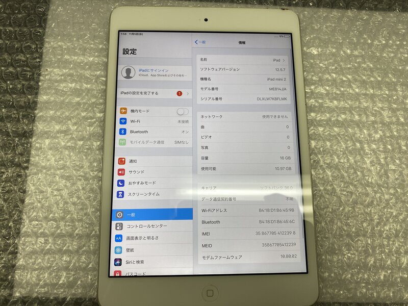 アクティベーションロック・・・OFF 充電端子の接触不良