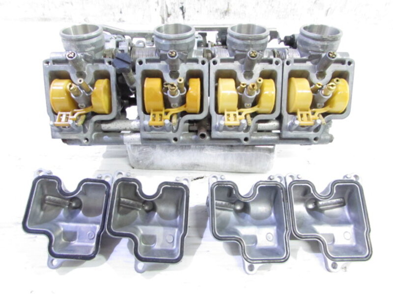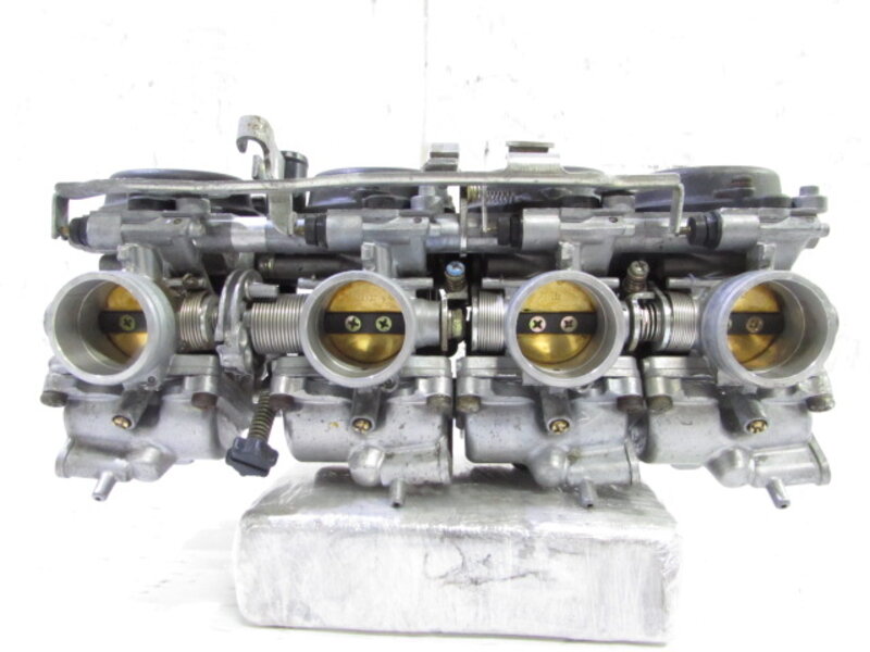 こちらの車両より取外したパーツ一台分を◆コチラ◆に出品しておりますので、ぜひご覧下さいませ。 ■商品詳細■ ☆フレーム・・・登録書類有! 目視で曲がりも御座いません! ☆エンジン・・・圧縮左から 約12.0kgf 約12.0kgf 約12.2kgf 約11.7kgf ☆フロントフォーク・・・インナーチューブ径 約41mm キャリパー取付ピッチ 約62mm ☆リアサスペンション・・・固定穴~固定穴 約300~305mm ☆Fホイール・・・ENKEI 16×3.50 ☆Rホイール・・・ENKEI 17×5.50 ☆Fタイヤ・・・ダンロップ 130/70-16 ☆Rタイヤ・・・ダンロップ 180/55-17
