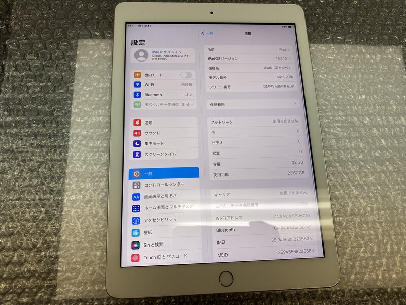 EP034 SIMフリー iPad 第5世代 Wi-Fi+Cellular A1823 シルバー 32GB